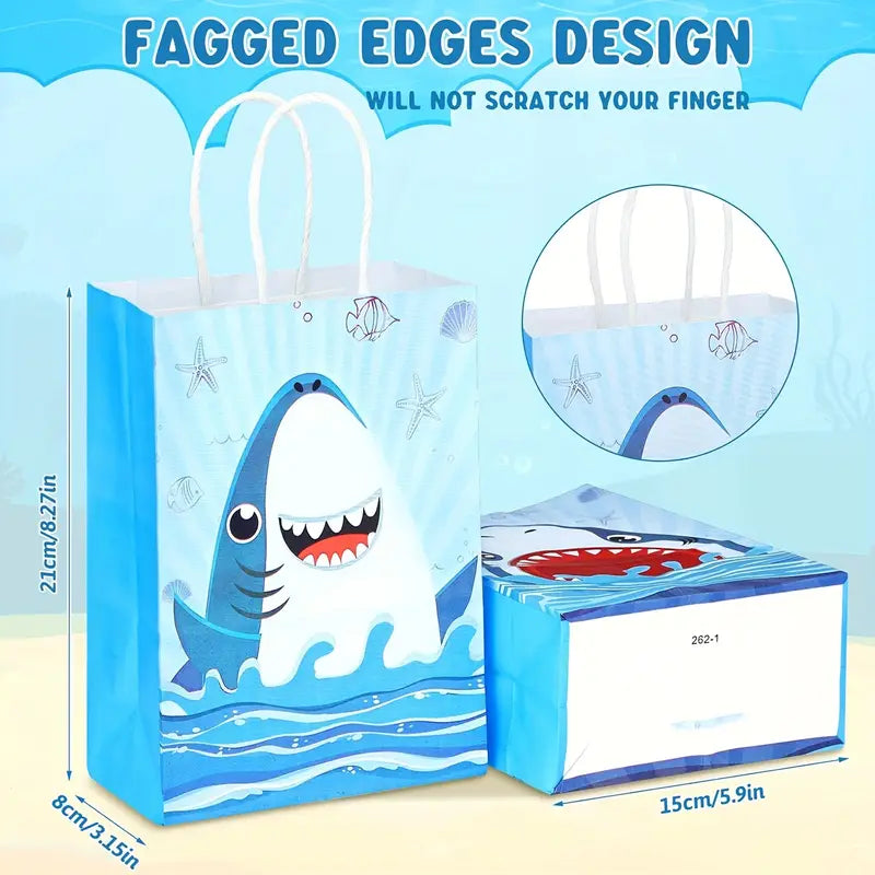 Blue Shark Print Gift Bags Pack of 24