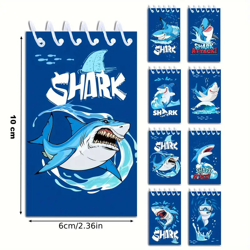Pack: Blue Shark Sea Animal Spiral Pocket Notebooks Pack of 8