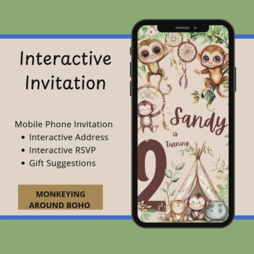 Monkeying Around BOHO Interactive Editable Video Invitation