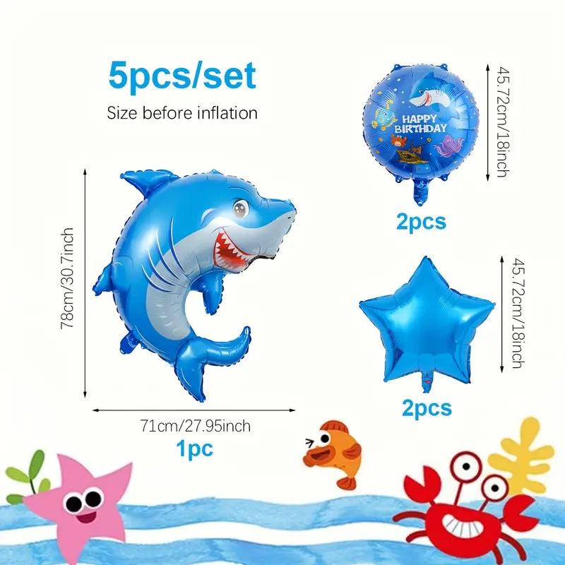 Shark Balloon Birthday Set Pack of 5