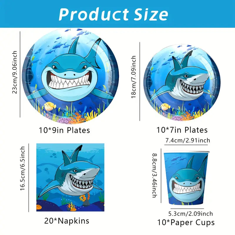 Pack: 10x Dinner Paper Plates. 10x Dessert Paper Plates, 10x Paper Cups, 20x Paper Napkins