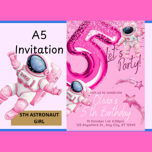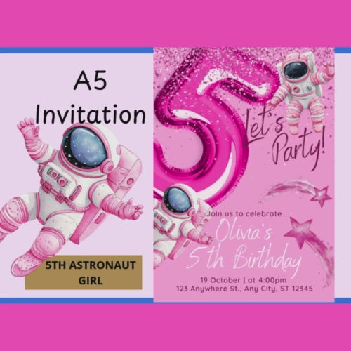 🚀🌙 Space Astronaut Girl Editable Invitation 🌙🚀