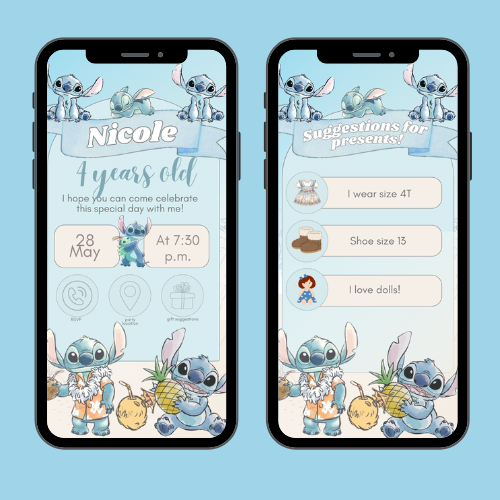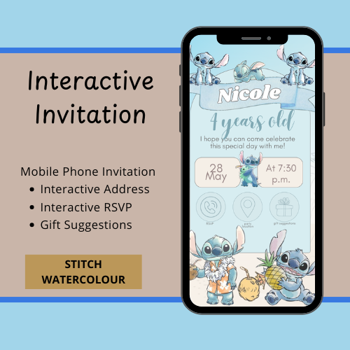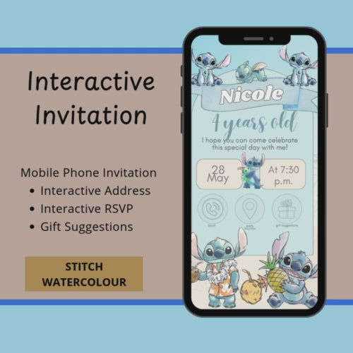 🌺💙 Stitch Watercolor Interactive Editable Invitation 💙🌺