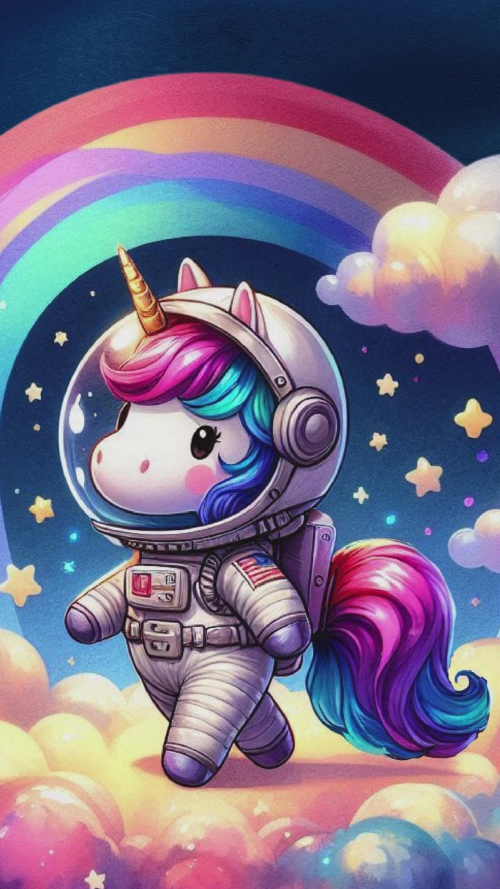 Enchanting Animation: Floating unicorns, shooting stars, planets, and rainbow trails—brought to life with cosmic music and effects.