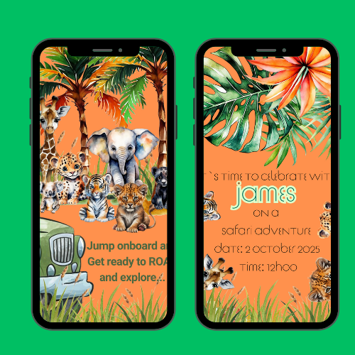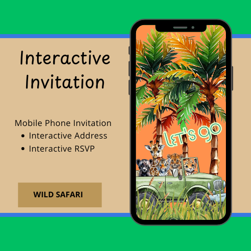 Get ready to roar into adventure! Our Wild Safari Interactive Video Invitation is the perfect way to kick off a jungle-themed birthday party, baby shower, or wild one celebration. With lively animations, jungle sounds, and vibrant safari animals, this digital invitation sets the scene for a party your guests will never forget!